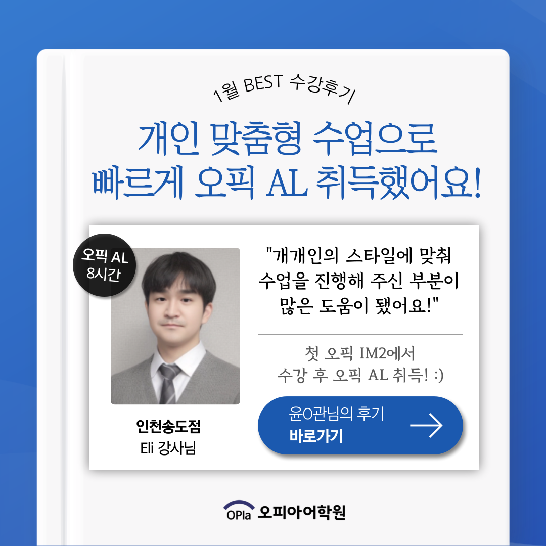 언어학습은 내가 직접 말해보는 것이 가장 중요합니다. 오피아 1:1 수업은 내가 직접 말해보는 시간이 극대화되는 수업방식입니다.