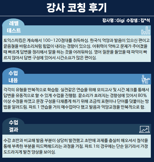 오피아어학원 분당점 #Gigi 강사님께 #토익스피킹을 수강하신 김*석님의 수강후기입니다.