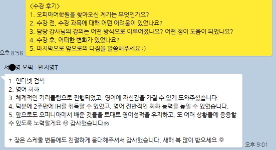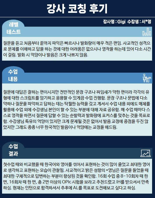 오피아어학원 분당점 #Gigi 강사님께 #오픽을 수강하신 서*영님의 수강후기입니다.