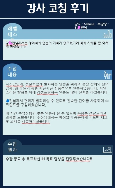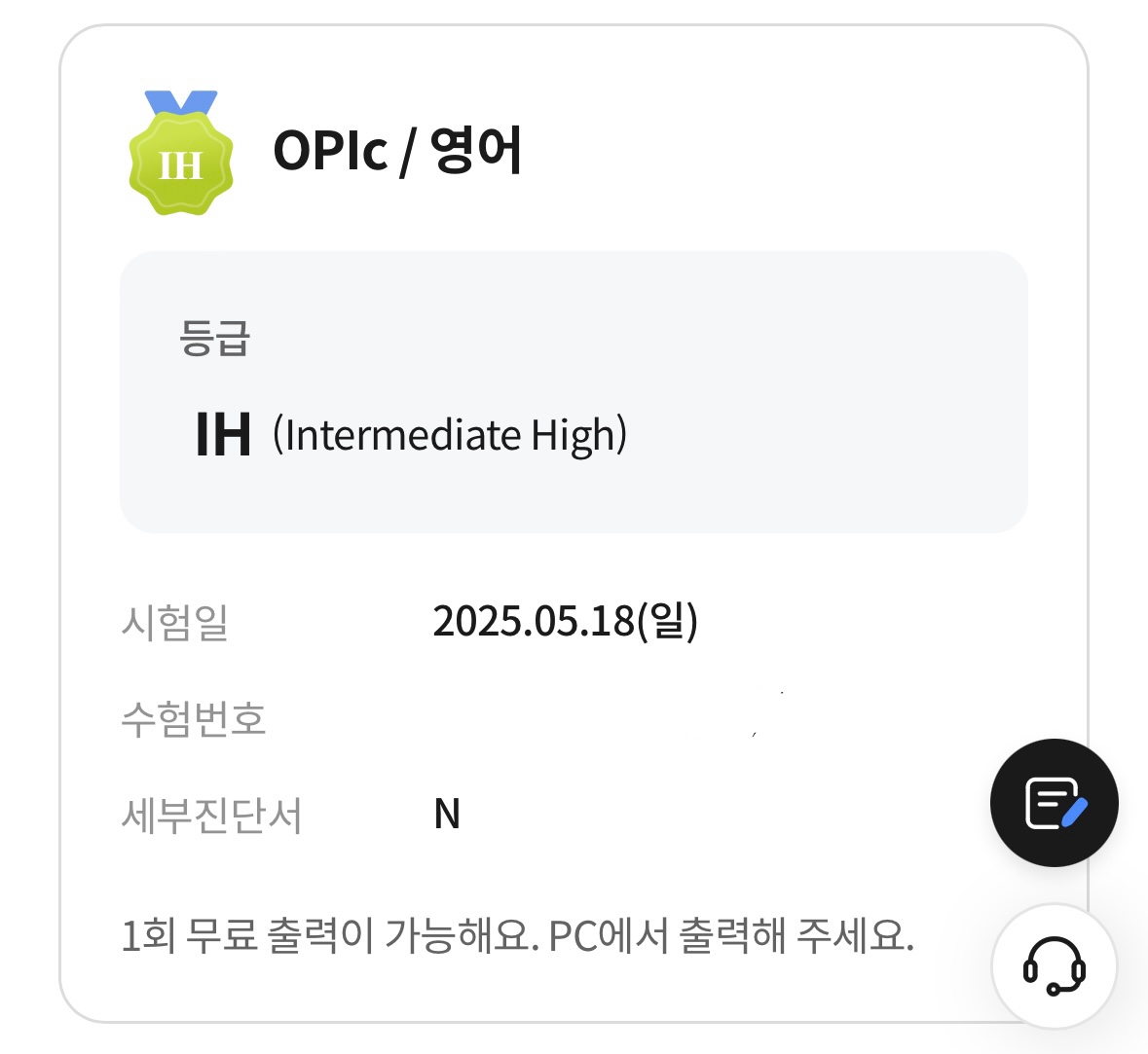 수강 종료 후 목표하신 IH 목표 달성을 전달주셨습니다!!