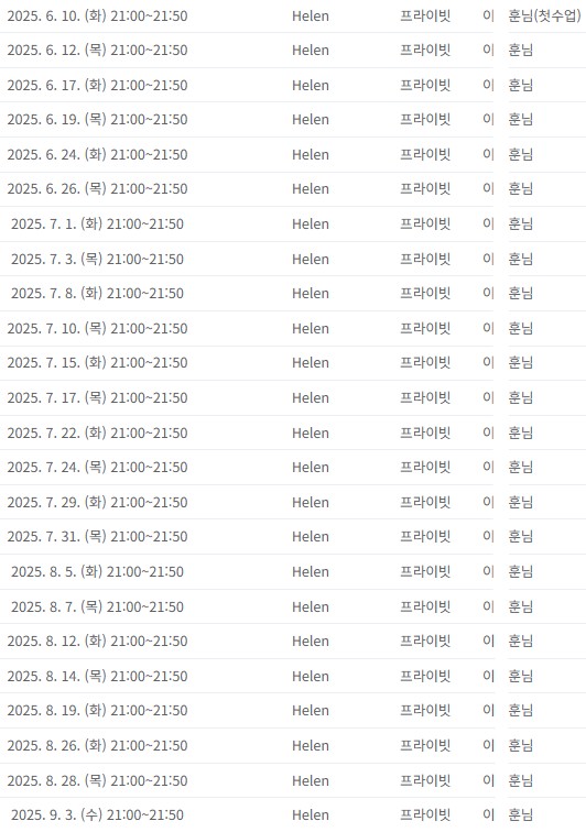 영어로 말문이 트이기 위해 프리토킹+교정 (좀 더 원어민같은 표현으로 바꿔보기 등)+어휘학습 방식으로 진행하였습니다.