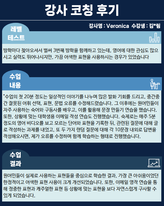 오피아어학원 분당점 #Veronica 강사님께 #영어회화를 수강하신 김*림님의 수강후기입니다.