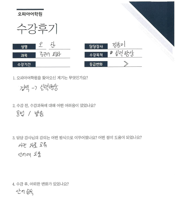 1. 오피아 어학원을 찾아오신 계기는 무엇인가요?