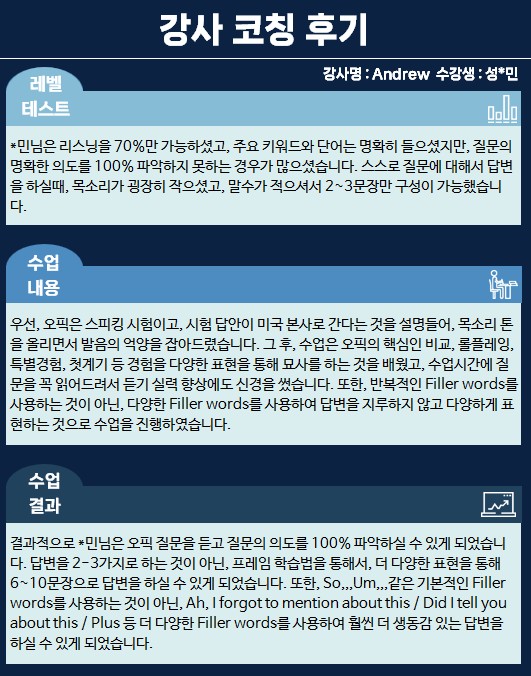 오피아어학원 분당점 #Andrew 강사님께 #오픽을 수강하신 성*민님의 수강후기입니다.