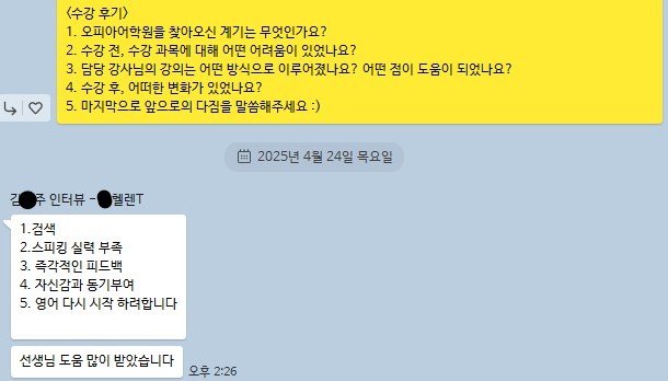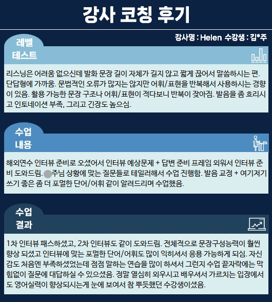 오피아어학원 분당점 #Helen 강사님께 #인터뷰를 수강하신 김*주님의 수강후기입니다.