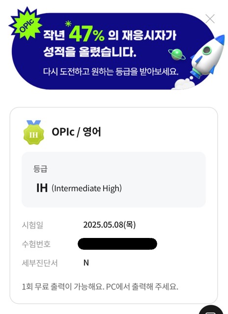 오픽 성적 취득을 위해 찾아오게 되었습니다🙌🏻