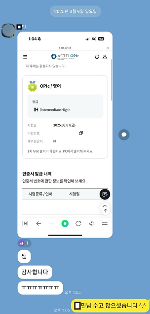 오피아어학원 동탄삼성점 #고건일 강사님께 #오픽을 수강하신 이*민님의 수강후기입니다.